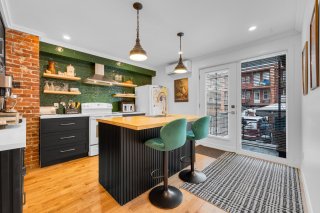 L'unité 691 offre... Superbe aire de vie à aire ouverte inondée de lumière naturelle grâce à de grandes fenêtres Planchers de bois franc riches, apportant chaleur, continuité et élégance intemporelle Îlot central avec comptoir en bois de boucher, idéal pour recevoir, les repas décontractés et le quotidien Mur de brique apparente ajoutant charme, texture et cachet architectural unique Chambre supplémentaire au rez-de-chaussée, parfaite comme bureau à domicile, chambre d'invités ou espace polyvalent Salle d'eau pratique et élégante