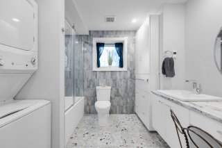 Sous-sol entièrement aménagé comprenant... Grande salle familiale, idéale pour soirées cinéma, salle de jeux ou espace de vie additionnel Deux chambres spacieuses baignées de lumière naturelle, offrant confort et intimité Salle de bain contemporaine avec douche vitrée et finitions en céramique texturée élégantes Plancher en terrazzo distinctif jumelé à une vanité épurée pour un look moderne et soigné Laveuse et sécheuse superposées intégrées pour un maximum de commodité